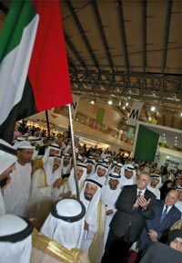 سلطان يرفع علم الإمارات في معرض الشارقة للكتاب. وام