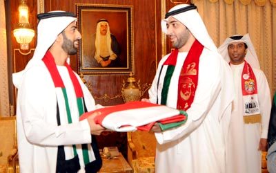 ولي عهد أم القيوين يتسلّم علم الدولة من ولي عهد رأس الخيمة