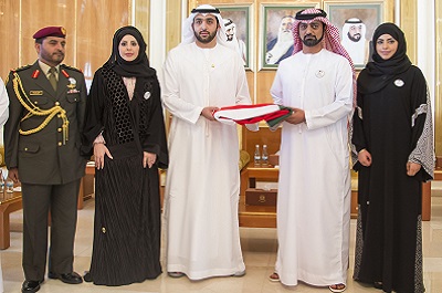 تسلم سمو الشيخ عمار بن حميد النعيمي ولي عهد عجمان "علم الدولة" من سمو الشيخ راشد بن سعود المعلا ولي عهد أم القيوين، وذلك ضمن مبادرة "مسيرة علم" التي تقام تحت رعاية صاحب السمو الشيخ خليفة بن زايد آل نهيان رئيس الدولة، بمناسبة احتفالات الدولة باليوم الوطني الـ 42 للاتحاد.