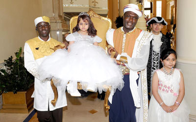 وحضرت «الأميرة» سارة صباح الخميس الماضي إلى فندق الريتز كارلتون بأبوظبي بسيارة رولزرويس، وكان في انتظارها مجموعة من أطفال المدارس، إضافة إلى العاملين في الفندق الذين استقبلوها بالزهور وهي تسير على السجادة الحمراء، قبل أن تجلس على «كرسي العرش»، ويحملها اثنان من العاملين في الفندق إلى حيث تم تجهيز منصة خاصة لتجلس عليها ويحيط بها الأطفال وهم يتابعون الفقرات الترفيهية التي أعدت لـ«الأميرة ورفيقاتها».