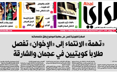وكانت صحيفتا «الرأي» و«الوطن» الكويتيتان نشرتا أمس، أن السلطات الإماراتية وجامعتي الشارقة وعجمان قررت إنهاء دراسة ثمانية من الطلبة الكويتيين في الإمارات، أربعة في جامعة الشارقة ومثلهم في جامعة عجمان، بسبب «الاشتباه في انتمائهم إلى جماعة الإخوان المسلمين»، وأن قرار الفصل جاء مفاجئاً للطلبة والسفارة الكويتية في الدولة، بعد أن أبلغتهم إدارتا الجامعتين بأنهم غير مرغوب في وجودهم في الإمارات، وأن عليهم المغادرة، كما أن من هو منهم خارج الإمارات سيمنع من دخولها.