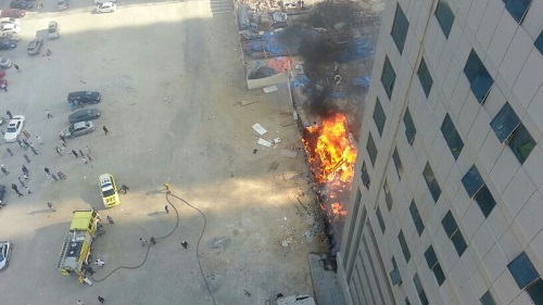 وسارعت فرق الإطفاء إلى موقع الحادث للسيطرة على الحريق ومنع امتداده الى البنايات المجاورة .