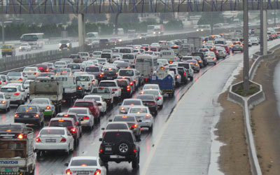 ازدحام مروري بسبب الأمطار. الإمارات اليوم