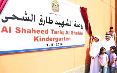 أطلقت وزارة التربية والتعليم، أمس، اسم الشهيد الملازم أول طارق الشحي على روضة أطفال (روضة الشموع سابقا)، في منطقة شعم في رأس الخيمة، تخليداً لذكراه.