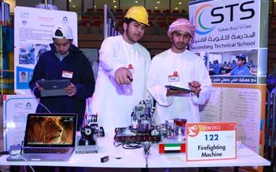 ابتكر ثلاثة طلاب مواطنين في المدرسة الثانوية الفنية في أبوظبي، رجل إطفاء آلياً (قاهر الحريق)، قادراً على إطفاء الحرائق الكبيرة، وحمل ماء، أو أي مادة إطفاء، وإنقاذ الضحايا على نحو يجنّب رجال الإطفاء المخاطرة بحياتهم في الأماكن شديدة الخطورة، وحصلوا به على الميدالية الذهبية للمشروع المتميز في أولمبياد الروبوت.