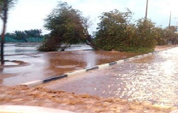 هطلت عصر اليوم، أمطار غزيرة، على جزيرة دلما بالمنطقة الغربية، مصحوبة برياح شديدة وبرق ورعد.