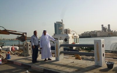 الحمادي يتابع إنشاء الحواجز الخرسانية على خور سوق السمك. من المصدر