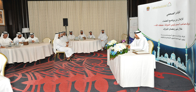 كشفت الهيئة العامة للأوقاف والشؤون الإسلامية، خلال مؤتمر صحافي، أمس، عن برنامج صاحب السمو رئيس الدولة لاستضافة نخبة من علماء الإسلام في جميع فروع المعرفة الإسلامية، يبدأ توافدهم إلى الدولة يوم الخميس المقبل لإلقاء نحو 800 محاضرة وندوة دينية خلال شهر رمضان المبارك، تتضمن محاور عدة، ضمن 30 عنواناً رئيساً وضعت بالتشاور والتنسيق مع الجهات والمؤسسات المجتمعية التي تطلب أن تخصص لها محاضرات، إضافة إلى دروس لموظفيها.