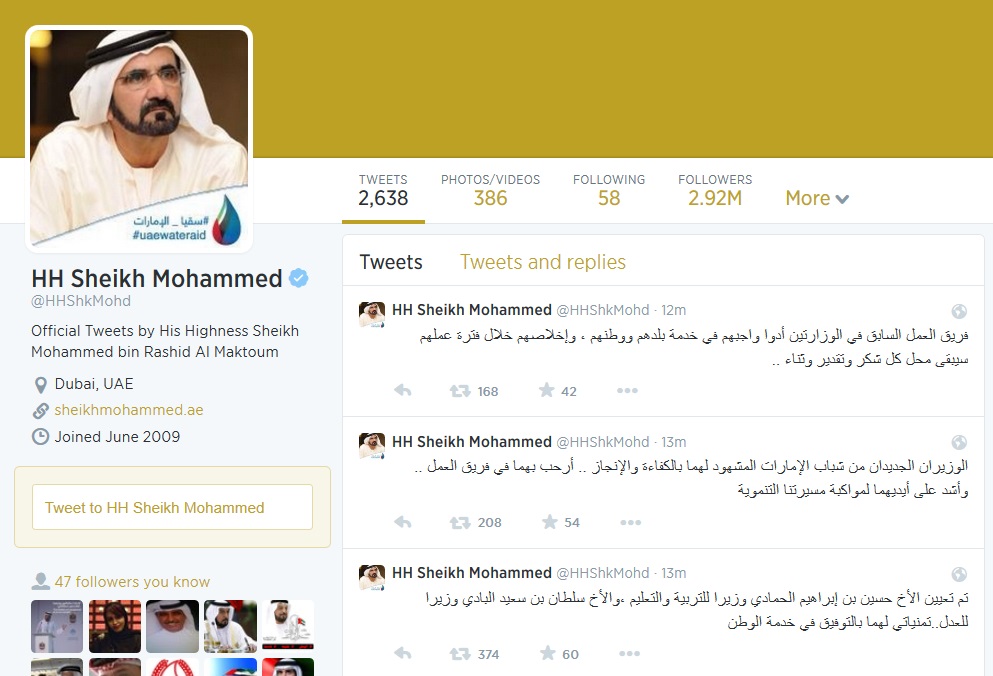 ونشر سموه عبر صفحته في موقع التواصل الاجتماعي "تويتر" الإعلان عن التغيير الوزاري في حقيبتي وزارة التربية والتعليم، موضحاً أن الوزيرين الجديدين من المشهود لهما بالكفاءة واستحقا المرتبة التي وصلا إليها، دونما إنقاص من الوزيرين السابقين، وإخلاصهما في العمل.