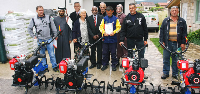 وقال المنصوري: «وزعت الدائرة 100 جرار يدوي، و40 حظيرة للمواشي، و26 بيتاً محمياً للزراعة للأسر البوسنية».