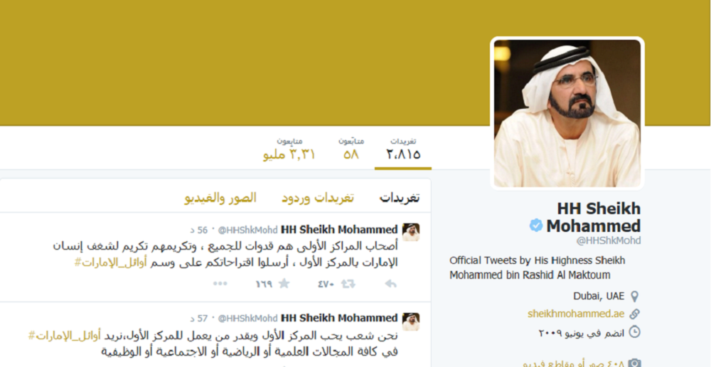 طلب صاحب السمو الشيخ محمد بن راشد آل مكتوم نائب رئيس الدولة رئيس مجلس الوزراء حاكم دبي من الجمهور ومتابعي سموه على وسائل التواصل الاجتماعي ترشيح واقتراح 43 إسما من أسماء الأوائل في الإمارات في مختلف المجالات وذلك لتكريمهم في احتفالات اليوم الوطني الـ43.