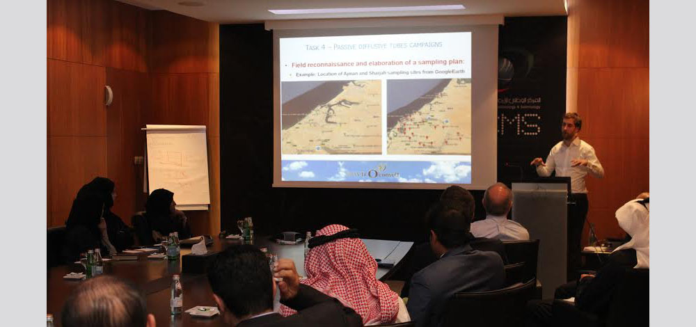 عقد المركز الوطني للأرصاد الجوية والزلازل ورشة عمل لمناقشة النتائج النهائية لدراسة تقييم وتحديد مواقع محطات رصد جودة الهواء في الامارات الشمالية والتي تم تنفيذها بالتعاون مع أحد أهم الشركات الفرنسية في هذا المجال لتنفيذ هذه الدراسة، وحدد من خلالها خمسة عشر موقعا مثاليا لرصد جودة الهواء، تبعه عرضين عن أحدث الأجهزة وشبكات المراقبة لجودة الهواء من عدة شركات محلية، وذلك لتقييم مستويات الملوثات الرئيسية في الامارات الشمالية، وإمكانية تحديد المناطق الحرجة، تحديد مواقع جديدة لمحطات رصد جودة الهواء بهدف توسيع شبكة مراقبة جودة الهواء.