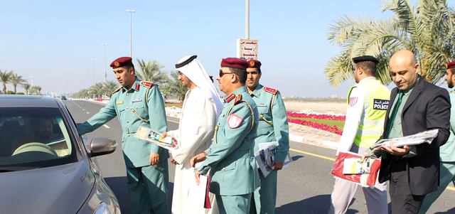 ووزع عضو المجلس الوطني الاتحادي، الرئيس التنفيذي لأكاديمية رأس الخيمة للطرق والمرور، فيصل عبدالله جمعة، ومدير إدارة المرور والدوريات في شرطة رأس الخيمة، العقيد علي سعيد العلكيم، ورئيس قسم الهندسة المرورية، العقيد أحمد الصم النقبي، عدداً من الكتيبات والمطويّات المرورية التي تحمل عبارات تحذر من خطورة القيادة في الأجواء الشتوية.