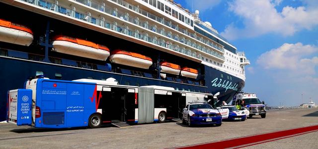 شارك فريقا إدارة الأزمات وإسعاف الموانئ بمؤسسة دبي لخدمات الإسعاف في تجربة إخلاء وهمية اشتملت على ايجاد حالة طوارئ على متن السفينة السياحية «ماين شيف 2»، الراسية ضمن محطة سفن الرحلات البحرية رقم (3) في «ميناء راشد»، واستدعت التجربة إجراء بحث دقيق واتخاذ إجراءات الإخلاء في الباخرة التي تحمل 2000 مسافر، وطاقماً مكوناً من 600 شخص حيث شاركت وحدة الدعم الفني، وهي الحافلة C المخصصة للأزمات، اضافة الى مركبات الإسعاف الرياضية فائقة السرعة.