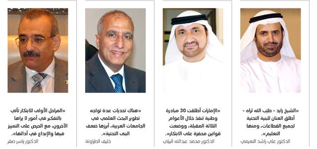 | • استراتيجية الإمارات تجعلها أكثر دول العالم ابتكاراً عام 2021. • 300 مساق جديد في كليات جامعة الإمارات خلال 5 سنوات. • الإمارات أطلقت 30 مبادرة وطنية لدعم الابتكار تطبّق خلال 3 سنوات. |
