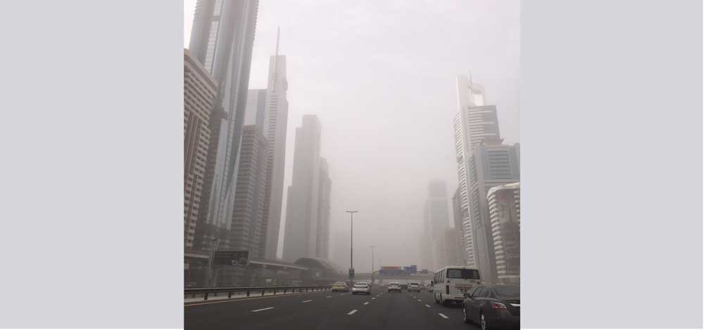 تسببت رياح جنوبية غربية، وشمالية غربية، وفقاً للمركز الوطني للارصاد الجوية، بتدني مدى الرؤية الافقية الى اقل من ألف متر على معظم مناطق الدولة.