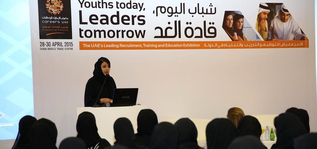 كلمة الهاشمي في افتتاح الإمارات للوظائف 2015 تستقطب حشداً من الزوّار.