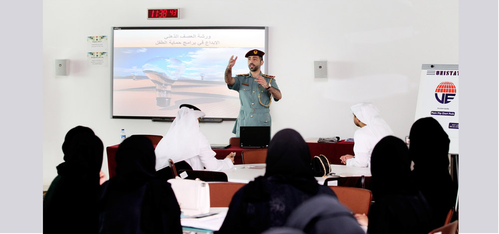 أطلق مركز وزارة الداخلية لحماية الطفل مبادرة العصف الذهني لتوليد الأفكار الإبداعية في مجال حماية الطفل، وتعدّ الأولى من نوعها في هذا المجال؛ وتم تنفيذها بشكل علمي ووفقاً لقواعد محددة تم إعدادها وتقديمها من قبل الخبير المقدم الدكتور عمر إبراهيم آل علي، نائب مدير مركز تنمية القادة ورعاية المبدعين، بحضور نخبة متميزة من طالبات جامعة زايد.