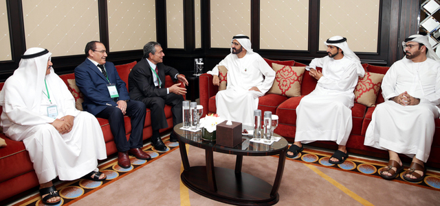 وكان سموّه قد التقى بحضور سموّ الشيخ حمدان بن محمد بن راشد آل مكتوم، ولي عهد دبي، ووزير شؤون مجلس الوزراء محمد بن عبدالله القرقاوي، ووزير الصحة رئيس مجلس إدارة هيئة دبي للثقافة والفنون، عبدالرحمن بن محمد العويس، ومدير عام دائرة التشريفات والضيافة في دبي، خليفة سعيد سليمان، رئيس وأعضاء مجلس أمناء جائزة محمد بن راشد آل مكتوم للغة العربية، وتجاذب معهم الحديث حول شؤون وقضايا اللغة العربية، وسبل نشرها، وغرسها في نفوس وسلوكيات وممارسات الأجيال العربية الشابة التي باتت في معظمها غريبة عن لغتها الأم، بعدما اختلطت في اللغات الأجنبية، خصوصاً في الجامعات والمدارس التي تعتمد المناهج غير العربية.