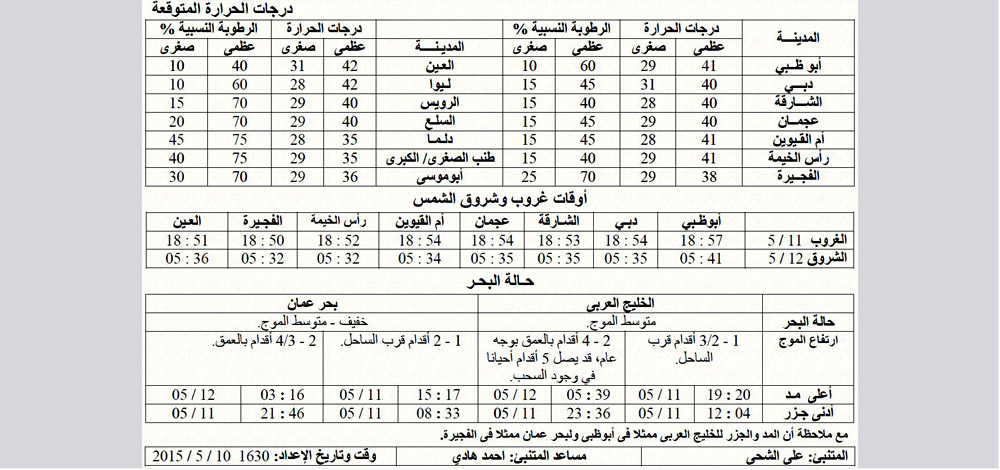 توقع المركز الوطني للزلازل والأرصاد الجوية، أن يكون الطقس مغبرا أحيانا وغائما جزئيا على بعض المناطق الشرقية، والرياح خفيفة إلى معتدلة السرعة بوجه عام، تنشط أحيانا ، والبحر خفيف