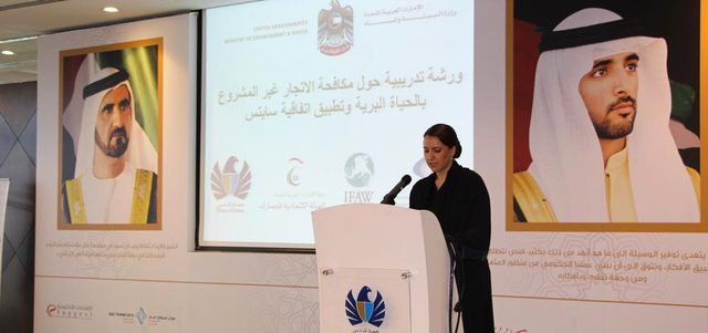 نظمت وزارة البيئة والمياه ورشة تدريبية حول مكافحة الاتجار غير المشروع بالحياة البرية، خلال الفترة من 17 إلى 21 مايو الجاري، بالتعاون مع جمارك دبي والصندوق الدولي للرفق بالحيوان، وشريكتي الوزارة الاستراتيجيتين، في تنفيذ اتفاق «سايتس»، المتمثلين في هيئة البيئة بأبوظبي والهيئة الاتحادية للجمارك، وذلك في مركز التدريب التابع لجمارك دبي، بحضور ممثلي سلطات الجمارك المحلية في الدولة. يأتي عقد الورشة ضمن جهود الدولة في مكافحة الاتجار غير المشروع بالحياة البرية، وتعزيز تنفيذ اتفاق سايتس، الذي يهدف إلى المحافظة على الحياة البرية وتحقيق استدامة التنوع البيولوجي في ظل التحديات المختلفة، كما يأتي عقد الورشة ضمن سلسلة الدورات وورش العمل التدريبية التي تنفذها الوزارة بالتعاون مع مختلف الجهات لضمان تأهيل الكوادر الوطنية، بالإضافة إلى التعاون مع الجهات الأخرى، والقيام ببرامج تأهيل القدرات على المستوى الإقليمي، حيث تمثل سلطات الجمارك الخط الأول عند استيراد عينات الحياة البرية والخط الأخير عند تصدير عينات أو منتجات الحياة الفطرية.