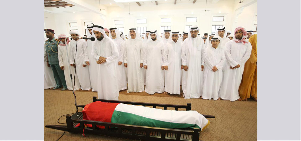حاكم أم القيوين يؤدى صلاة الجنازة على جثمان الشهيد سعيد عبيد بن فاضل آل على