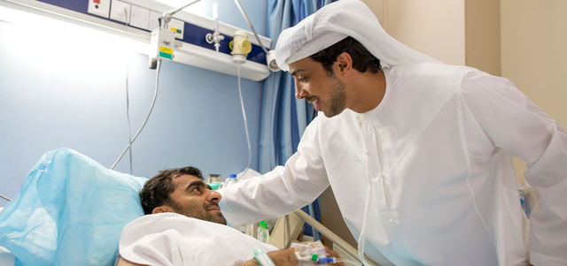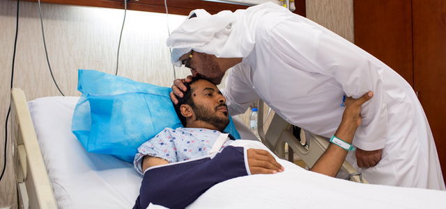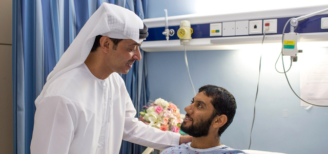 واستمع سموه، خلال الزيارة التي رافقه فيها سمو الشيخ هزاع بن زايد آل نهيان، مستشار الأمن الوطني نائب رئيس المجلس التنفيذي لإمارة أبوظبي، وسمو الشيخ منصور بن زايد آل نهيان، نائب رئيس مجلس الوزراء وزير شؤون الرئاسة، وعدد من المسؤولين من الأطباء القائمين على معالجة الجرحى، لشرح عن طبيعة إصاباتهم وأحوالهم الصحية، وسير ونوعية العلاج الذي يتلقونه في المستشفى.