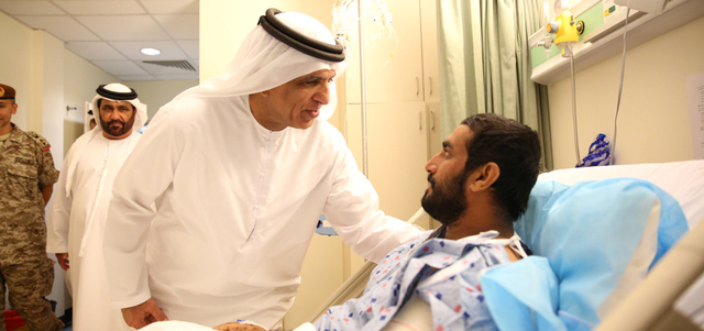 زار صاحب السمو الشيخ سعود بن صقر القاسمي، عضو المجلس الأعلى حاكم رأس الخيمة، مساء أول من أمس، المصابين والجرحى من قواتنا المسلحة في مستشفى زايد العسكري - أبوظبي، المشاركين ضمن قوات التحالف العربي في عملية «إعادة الأمل» ودعم الشرعية في اليمن.