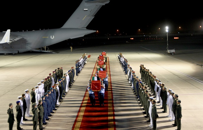 وجرت المراسم العسكرية الخاصة لاستقبال جثامين الشهداء على أرض المطار حيث كان عدد من كبار ضباط القوات المسلحة في الاستقبال.