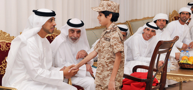 منصور بن زايد يعزي ذوي الشهيد علي البلوشي