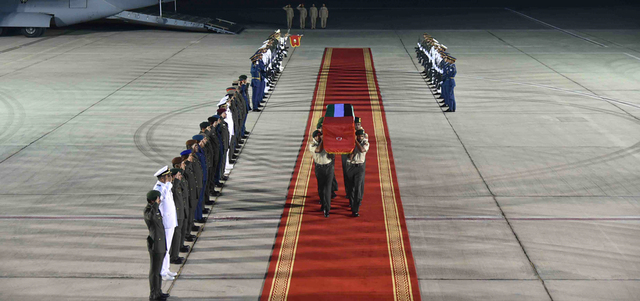 وجرت المراسم العسكرية الخاصة لاستقبال الجثمان على أرض المطار، حيث كان في مقدمة مستقبليه عدد من كبار ضباط وضباط صف القوات المسلحة.
