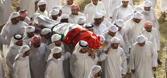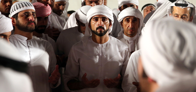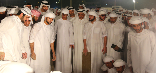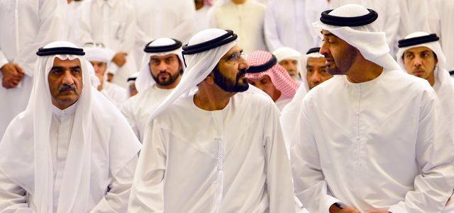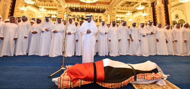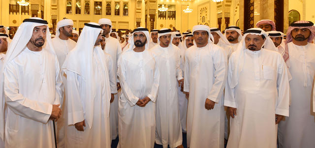 محمد بن راشد ومحمد بن زايد والحكام وأولياء العهود يؤدون صلاة الجنازة على الفقيد