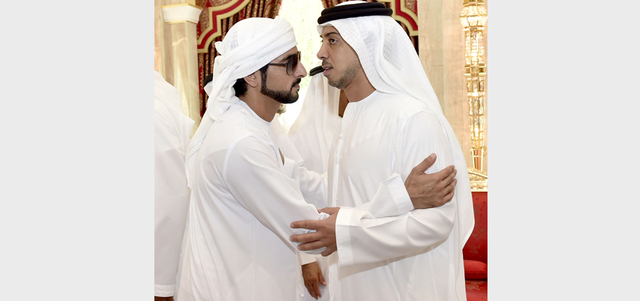 حمدان ومكتوم بن محمد يتلقيان العزاء في شقيقهما راشد