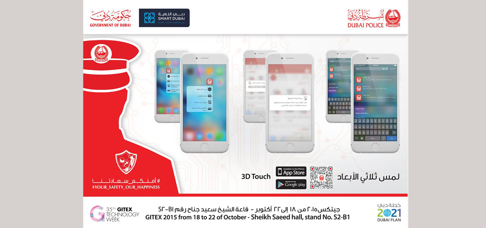 طورت القيادة العامة لشرطة دبي، تطبيقاتها على أجهزة "آي فون 6 أس" بما يتيح لمستخدمي هذا النوع من الهواتف الاستفادة من الميزات والخصائص المتمثلة في اللمس ثلاثي الأبعاد (3D Force Touch) وخاصية البحث السريع (Spotlight Search).