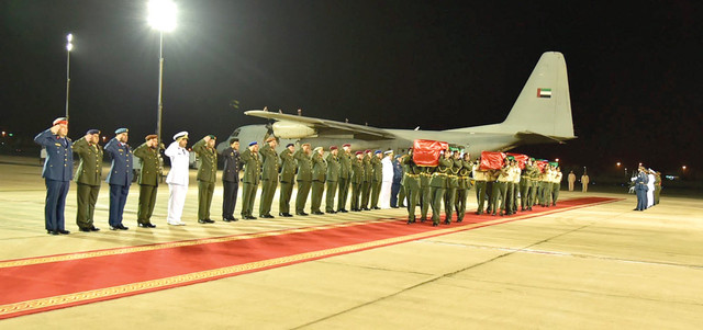 وصول جثامين شهداء الإمارات الأربعة إلى أرض الوطن