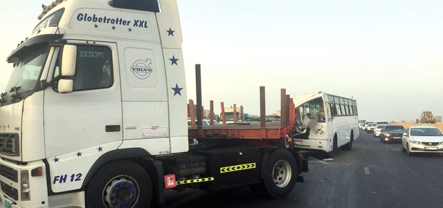 توفي شخص من جنسية دولة عربية، وأصيب سبعة من جنسية دولة آسيوية، بإصابات بسيطة في حادث تصادم وقع أمس، بسبب الضباب، بين حافلة لنقل العمال وشاحنة (تريلا) على طريق أبوظبي - السلع، بحسب نائب مدير إدارة مرور العاصمة؛ في مديرية المرور والدوريات في شرطة أبوظبي، العقيد أحمد الزيودي.