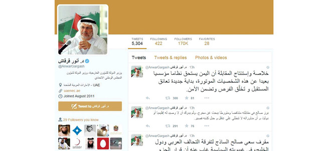 تصريحات قرقاش جاءت عبر مجموعة من التغريدات على «تويتر». أ.ف.ب