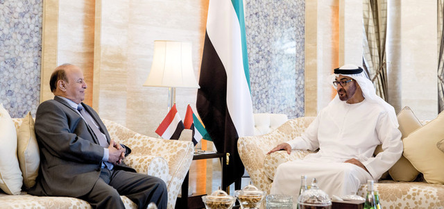 ووضع الرئيس اليمني، عبدربه منصور هادي، صاحب السموّ الشيخ محمد بن زايد آل نهيان، في مشهد المستجدات والأوضاع الراهنة التي تشهدها الساحة اليمنية، وتطوّرات الأحداث على الأرض، في ضوء الانتصارات المتوالية التي يحققها التحالف العربي بقيادة المملكة العربية السعودية، من خلال عملية «إعادة الأمل»، إلى جانب القوات الشرعية والمقاومة الشعبية.