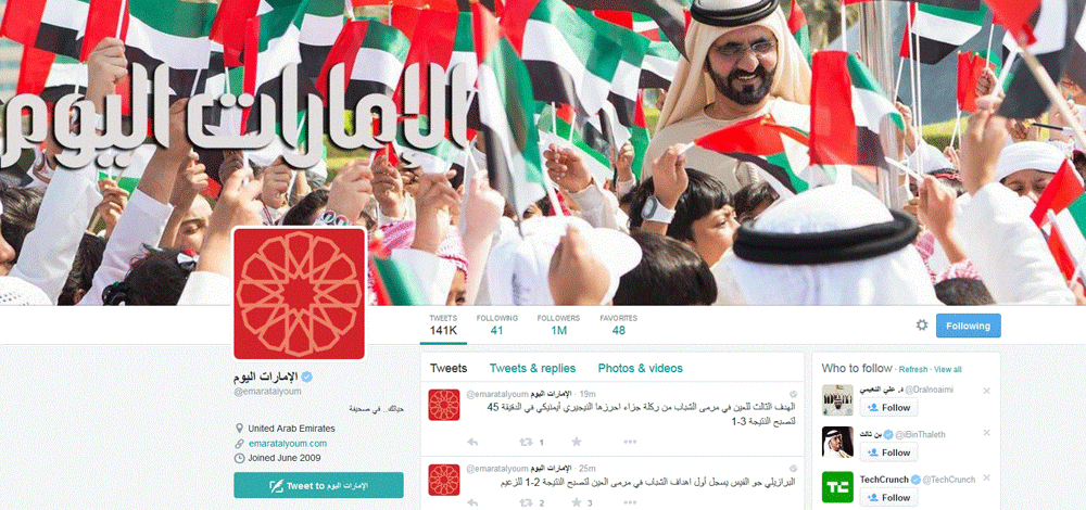 "الإمارات اليوم" تعبر حاجز المليون متابع على "تويتر" وتتصدر صحف الدولة