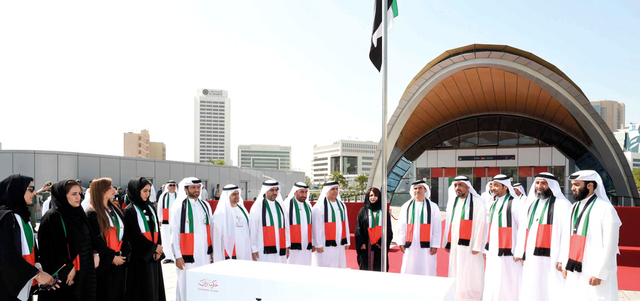 ورفع المدير العام ورئيس مجلس المديرين للهيئة، مطر الطاير، عَلَم الدولة أمام مدخل محطة مترو الاتحاد، بحضور عدد من المديرين التنفيذيين ومديري الإدارات والموظفين وعدد من مستخدمي مترو دبي، ووضع القطعة الأخيرة في تشكيل عمل فني لعَلم الدولة داخل محطة مترو الاتحاد، الذي يُعد أكبر علم مصمم من «الليغو» في العالم، وهو مكون من 146 ألف قطعة من «الليغو»، وتم إنجازه بواسطة فنان بريطاني، بمساعدة عدد من موظفي الهيئة ومرتادي المحطة.