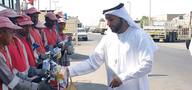 بلدية أبوظبي تقدم مياهاً وعصائر للعمال في مصفح