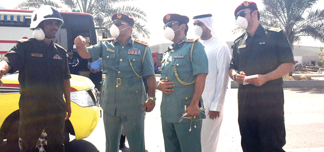 وأشرف القائد العام للدفاع المدني في وزارة الداخلية، اللواء جاسم محمد المرزوقي، ميدانياً، على عملية الإطفاء، يرافقه المدير العام في الإدارة العامة للدفاع المدني في أبوظبي بالإنابة، العقيد طارق صالح الشريف، الذي أوضح أنه فور تلقي البلاغ من غرفة العمليات، في الساعة 9:45 صباحاً تحركت خمس فرق من مركز الدفاع المدني والتدخل السريع القريبة، وسيارات الإسعاف، إلى موقع الحريق، وباشرت مهامها في إطفائه والحيلولة دون امتداده، وإسعاف المصابين ونقلهم إلى المستشفى.