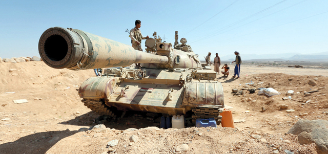 دبابة لقوات الشرعية على جبهة القتال شمالي مأرب. رويترز