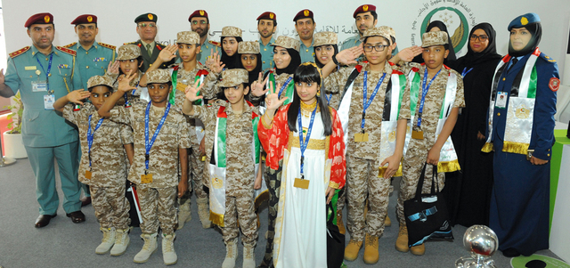 أبناء الشهداء يؤدون التحية العسكرية لدى زيارتهم مقر «إقامة دبي». وام
