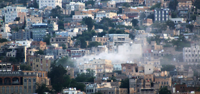 ويمنع المتمردون الحوثيون دخول المساعدات الغذائية الى تعز، ويقصفون الأحياء السكنية عشوائياً.