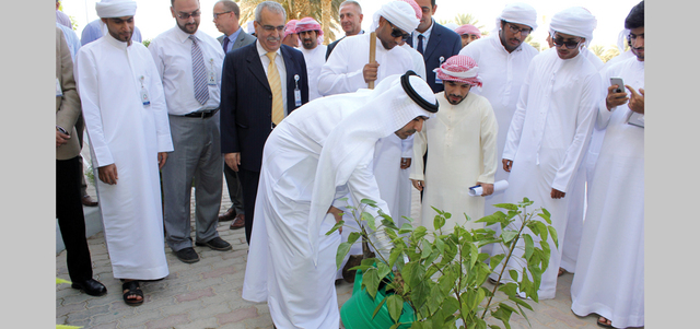 الأنصاري يغرس الشجرة بحضور الطلبة وأعضاء الهيئتين الإدارية والتدريسية. من المصدر