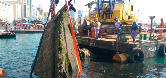 بلدية دبي تنتشل بقايا سفن غارقة في الخور