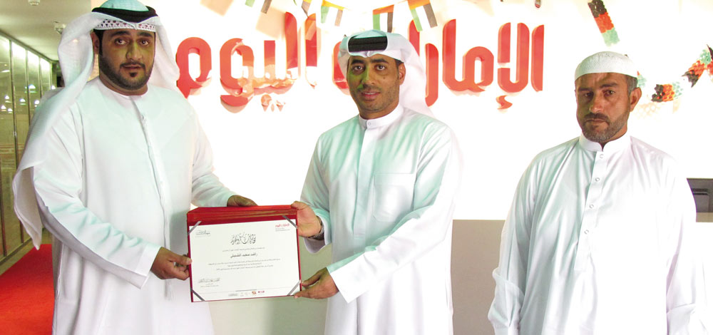 كرّمت صحيفة «الإمارات اليوم» المواطن راشد سعيد الشميلي، والباكستاني جلاب شاه تالا خان، بجائزة «شخصية شهرأكتوبر»، لدورهما المجتمعي وحسهما الأمني المرتفع، في ضبط سارق سطا على محل صرافة في إمارة رأس الخيمة أخيراً.