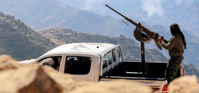 مقاتل من قوات الشرعية في منطقة المسراخ بتعز. أ.ف.ب
