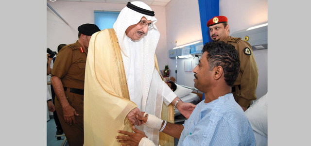 أمير منطقة جازان يزور العسكريين المصابين. واس